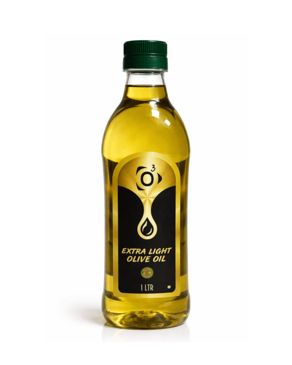 “Extra Light” refers to the neutral flavor and pale color of the oil. It does not mean it has fewer calories. O3 Extra Light Olive Oil is refined to remove the strong olive taste, making it ideal for recipes where you don’t want the oil to overpower the other ingredients.